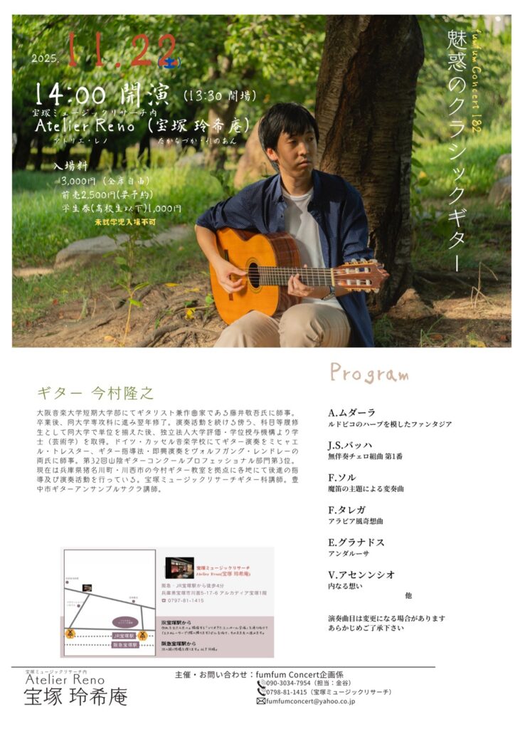 コンサート名 | 魅惑のクラシックギター(fumtum Concert 182) |
