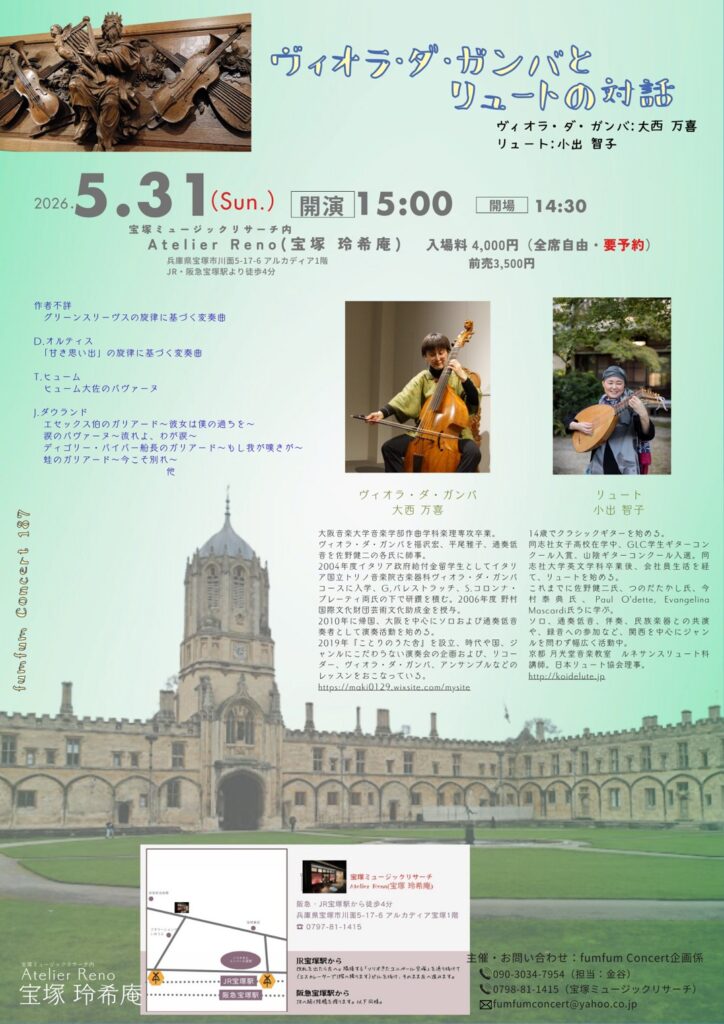 「ヴィオラ・ダ・ガンバとリュートの対話」を開催します